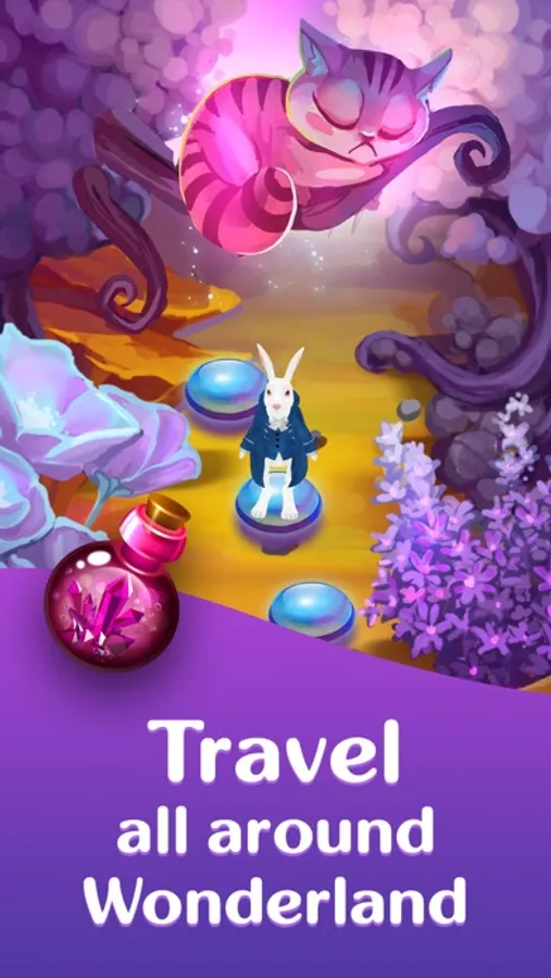 Complete match-3 levels to travel the fantastical lands. Each level will bring some magic back to Wonderland and it will come alive right in front of your eyes!