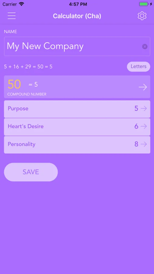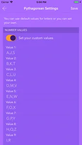With "name calculator" feature you can calculate number values on the fly when you type any name. If you like the number values of the name (personal, business, baby,...), you can mark them and save them on the list of your names for later use.