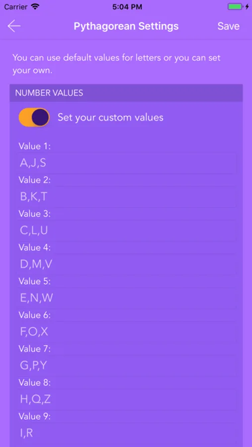 You can set your own letter values. You can enable or disable master numbers 11, 22, 33.