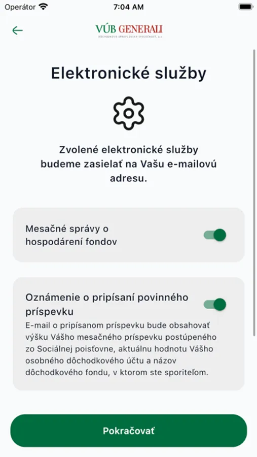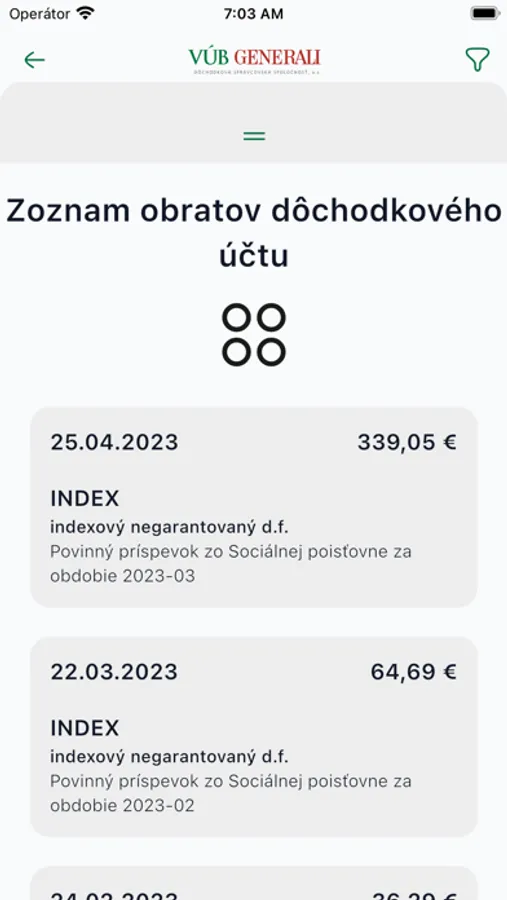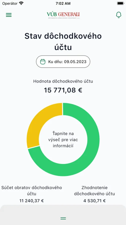 Myslíme na budúcnosť a preto vám VÚB Generali dôchodková správcovská spoločnosť prináša aplikáciu pre sporiteľa, pomocou ktorej môžete pohodlne spravovať svoj osobný dôchodkový účet. Po inštalácii sa prihlásite do svojho účtu a aktivujete aplikáciu pomocou PIN kódu, ktorý vám v budúcnosti bude slúžiť na jednoduchšie prihlasovanie.