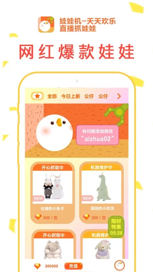 超高的抓中机会,站着中,躺着中,横竖都中!朋友圈的抓娃娃人气王就是你!