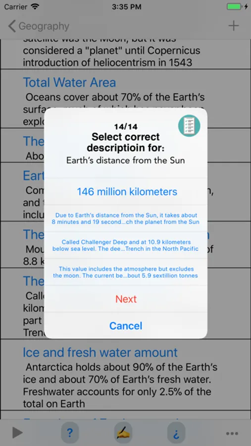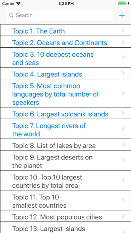 With the application "Geography Amazing Facts" you can investigate interesting topics presented below in offline mode.