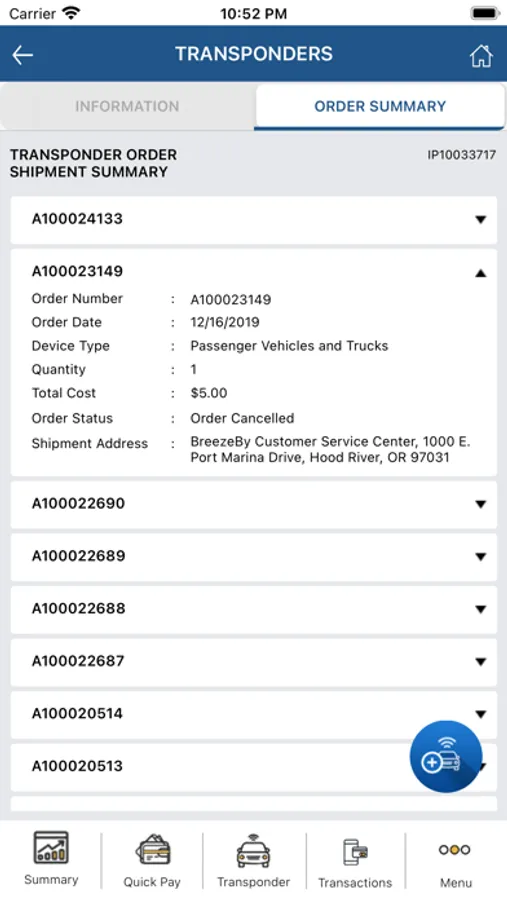 BreezeBy helps to manage your electronic tolling account. You can add money, order transponders, add or remove vehicles, change your contact info or payment method and track toll trips.