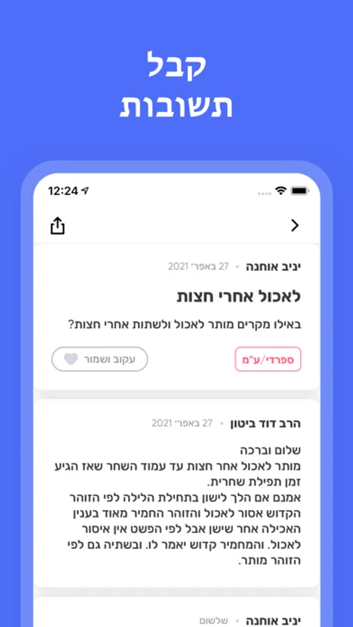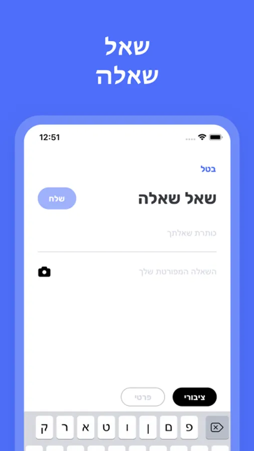 שלח את שאלתך דרך האפליקציה, והמתן לתגובה המהירה ביותר של צוות הרבנים המסור שלנו.