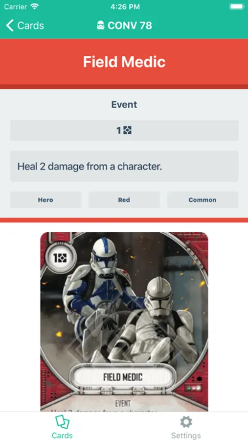 - View each card in a detail view, including the card image if available