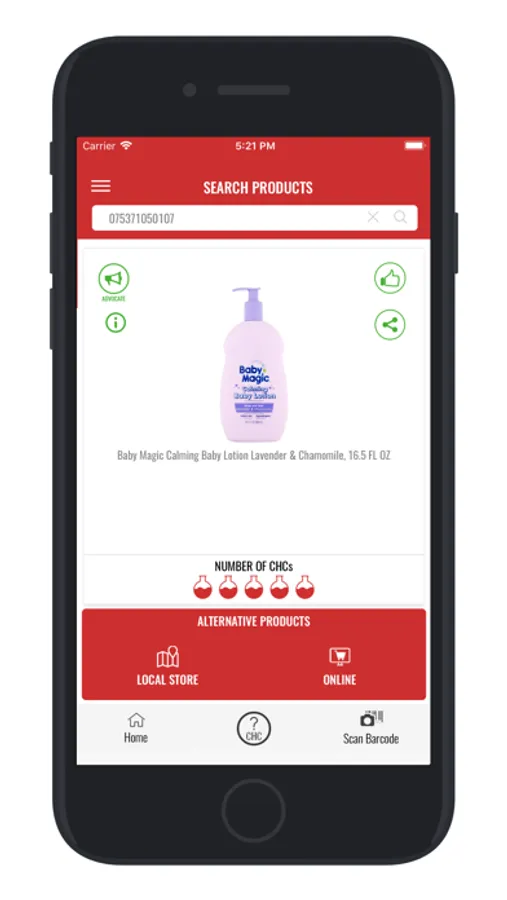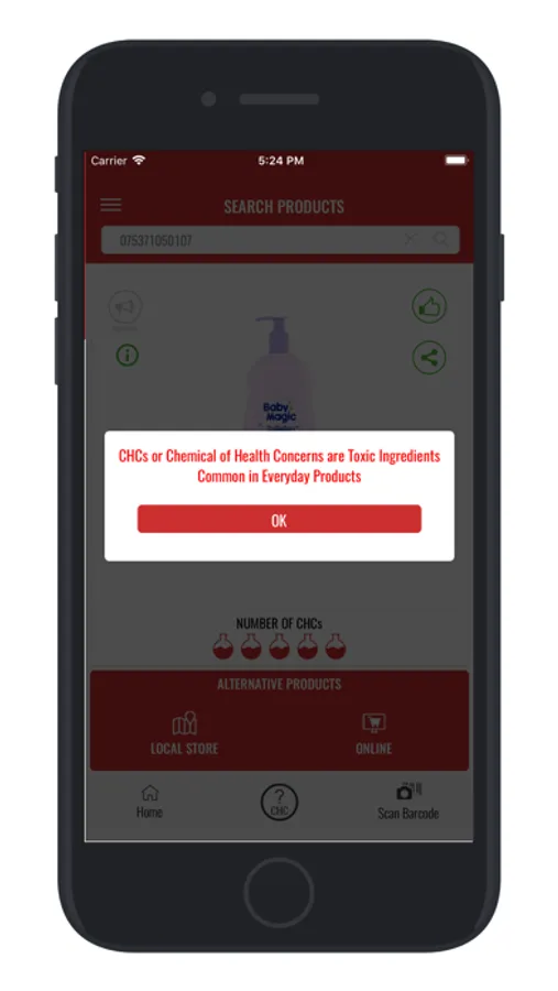 Alternative Products: Gives you the option of purchasing clean alternative either from online (Amazon) or Local stores (Walmart, Target, etc.)