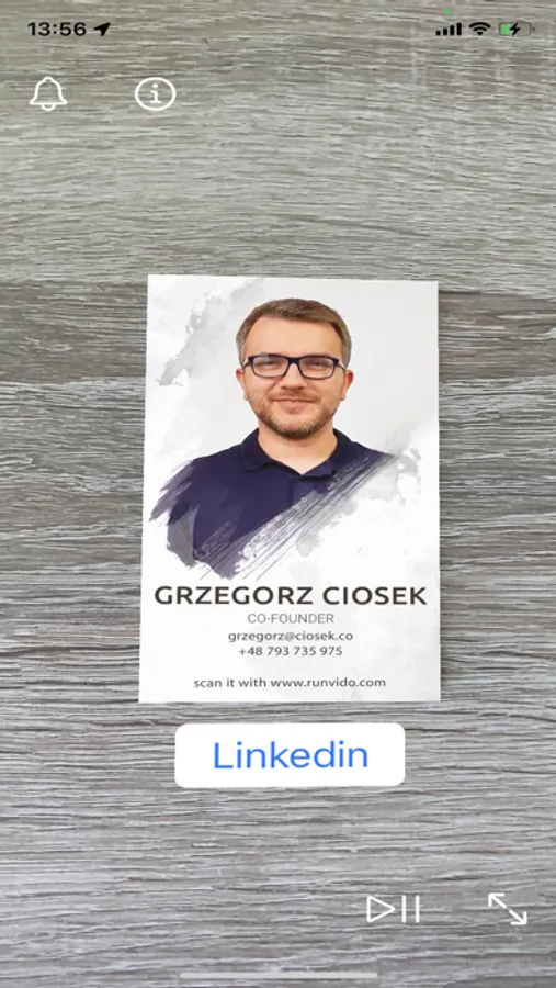 Approach the smartphone with Runvido app to the picture or any graphic object which uses our technology (marked with Runvido logo).