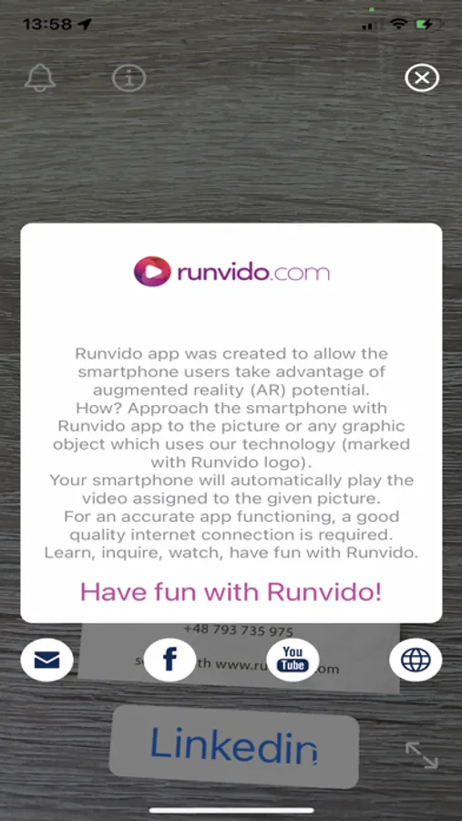 Runvido app was created to allow the smartphone owners make use of augmented reality (AR) potential. See the possibilities of use here: http://bit.ly/2wul1el.