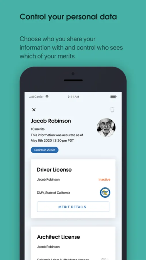*Protect Privacy -- Control access to your private data by determining which organizations and apps can access your merits.