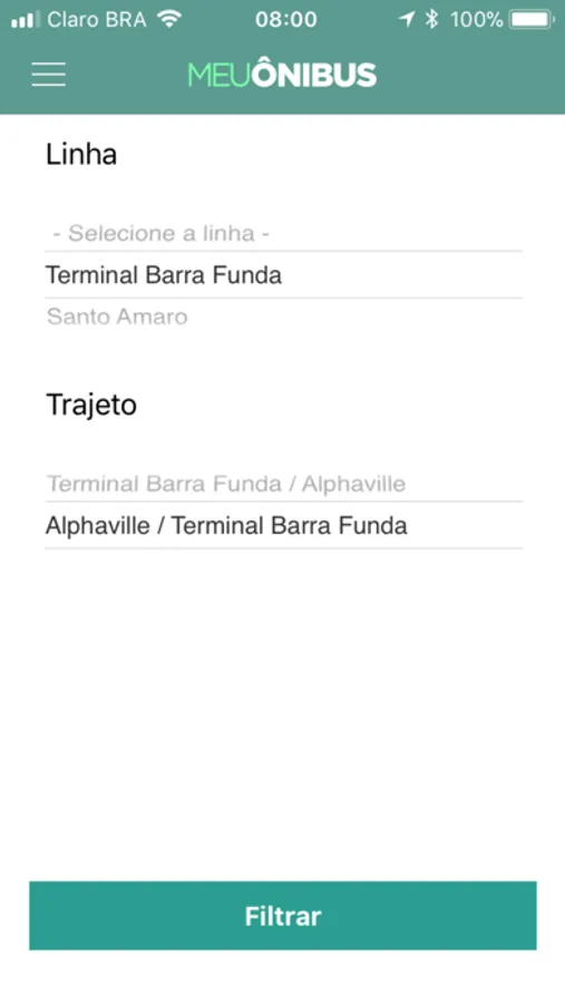 · Selecione o ponto de parada desejado e visualize as linhas que passam por este ponto e suas respectivas previsões de chegada;