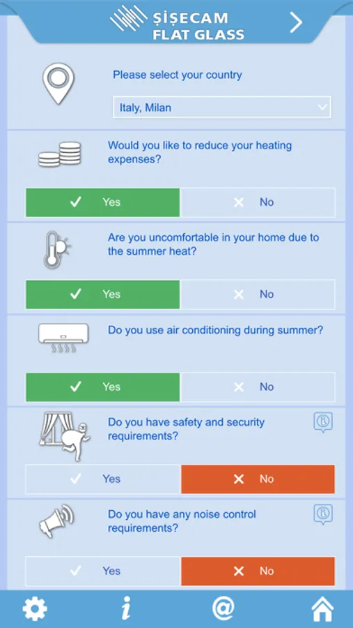 With ‘’Right Glass’’ , you can easily choose the most appropriate Insulating Glass Unit for your home by answering a few questions. Glass recommendations are provided according to your answers in terms of heat and / or solar control, noise control, safety and security requirements.