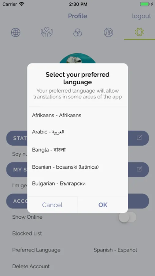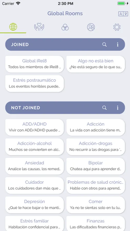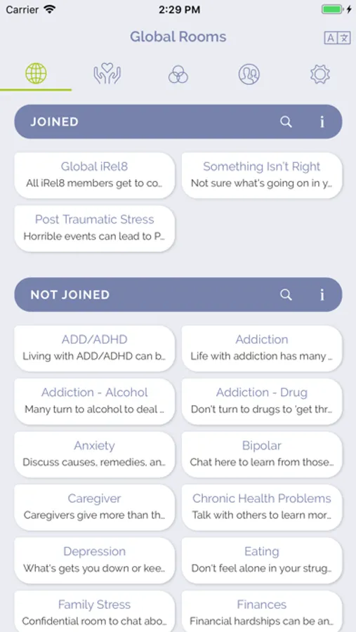 1. Global Chat - A room for everyone using iRel8 to talk or listen to advice.