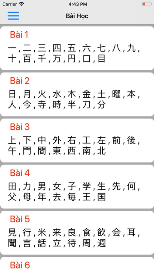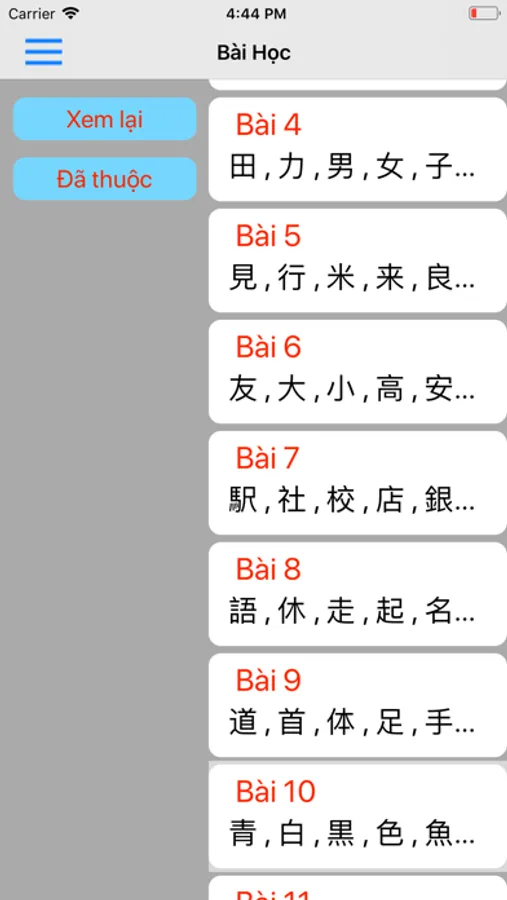 Kanji look and learn là ứng dụng hỗ trợ việc học Kanji trong tiếng Nhật. Bao gồm 512 chữ Hán chia làm 32 bài mỗi bài khoảng 16 chữ và mỗi chữ được miêu tả rất cụ thể như: