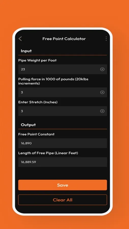 Simply input Pipe Weight, Pulling Force, and Stretch to get an instantaneous result for Free Point Constant and Length of Free Pipe (linear feet).