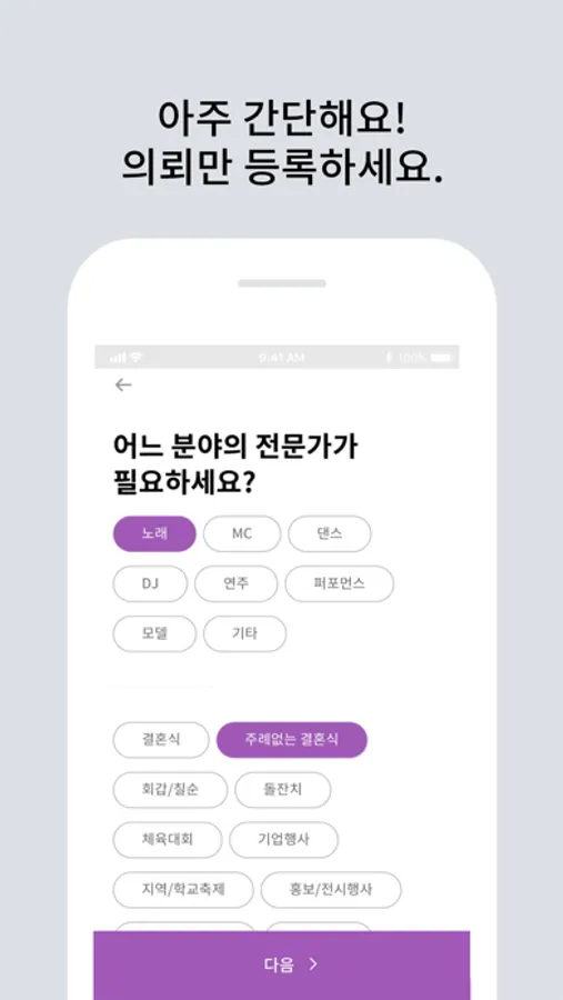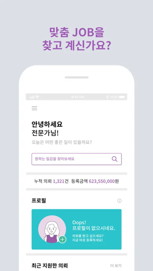 단 1분 만에 의뢰부터 섭외까지 언제 어디서든 다 할 수 있어요.