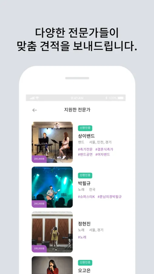 검증된 엔터테이너의 견적을 한번에 비교할 수 있어요!