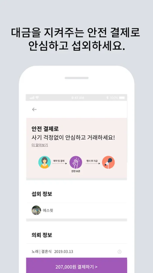 3. 안전 결제로 원하는 엔터테이너를 섭외하세요.