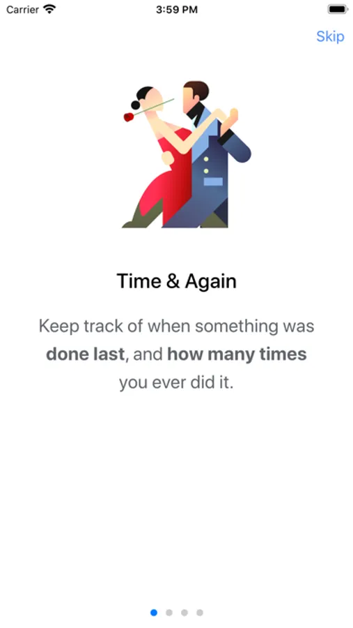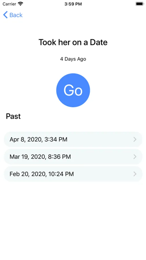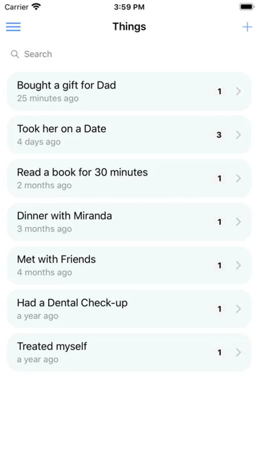 Keep track of when something was done last, and how many times you ever did it. Simply create the things you want to track, and when you do those things, just touch one button to remember forever. When you see something you love that was done very long ago, you might want to do it again sooner. Helps staying in the game.