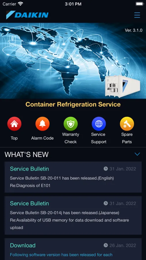 As a Daikin after-service support, we provide general technical information and technical information about Daikin Container Refrigeration Units to users who handle the container units, through the container service app.