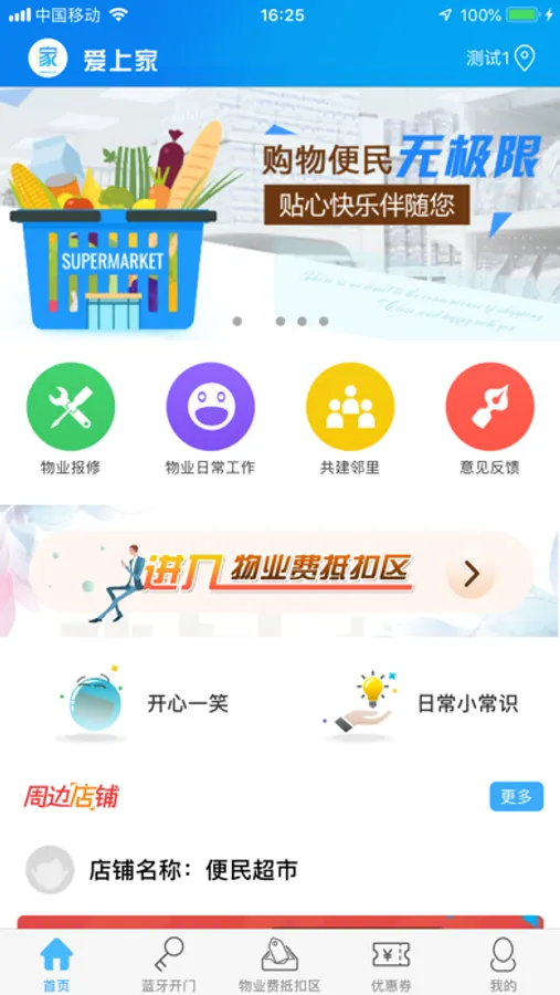 应用介绍:一、物业基础服务:自主缴费、小区报修、小区公告等,点一点爱上家即可轻轻松松找物业,提高业主与物业的沟通效率,帮助物业公司提升服务质量。二、提供洗车服务、超市购物等服务模块,让小区业主生活更加便捷,共建和谐智慧社区。1、洗车服务:为小区业主提供安全、快速、价格透明的洗车服务;3、超市购物:业主通过app超市购物后可送货上门,超市商品实惠、配送及时。