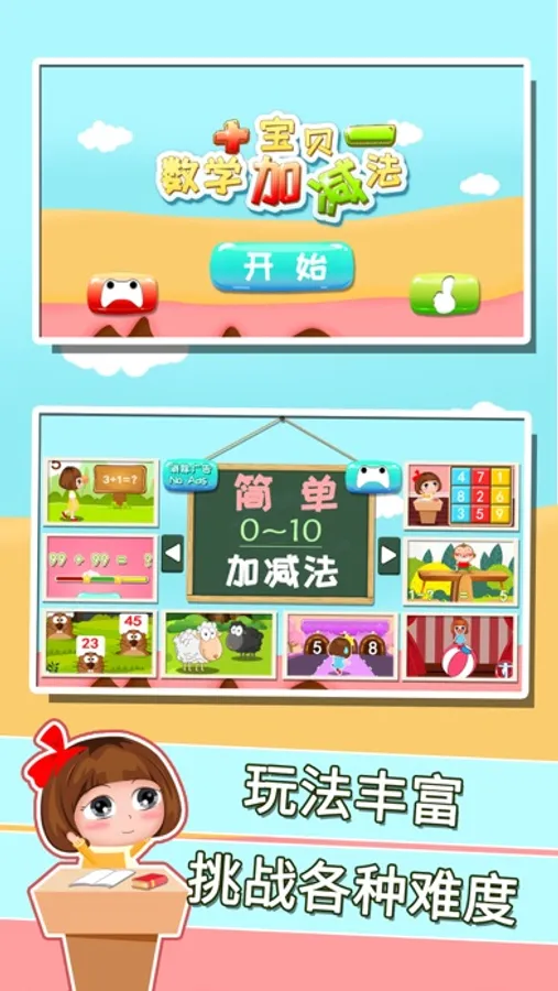 Age teaching: Game title is divided into 3 kinds of difficulty, suitable for children of different ages.