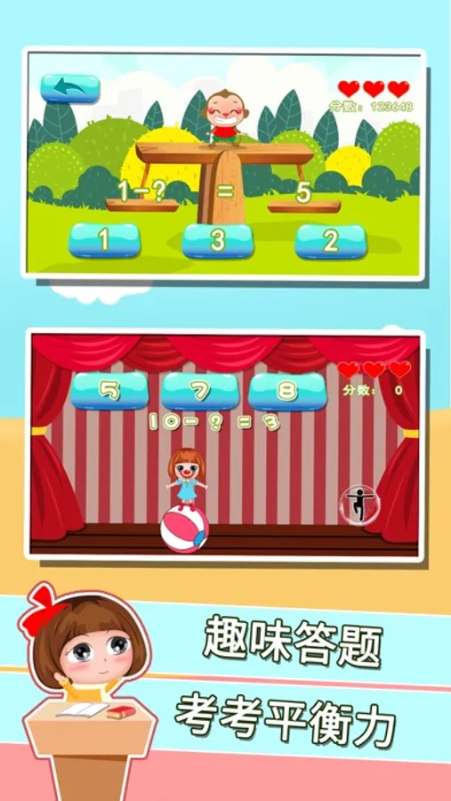 Want to know the numbers, learn addition and subtraction? Then come to the game. This is a casual game for children, children can learn the Numbers by playing games, practice related topics. A variety of puzzle games, combined with interesting mathematical problems, an endless enjoyment.