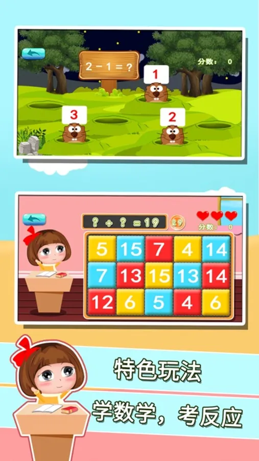 Puzzle gameplay: Whac-A-Mole, counting sheep, looking for diamonds, simple puzzle play, children will not feel boring while learning knowledge. 8 kinds of fun games, and there is always a suitable one for your kids.
