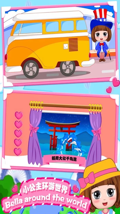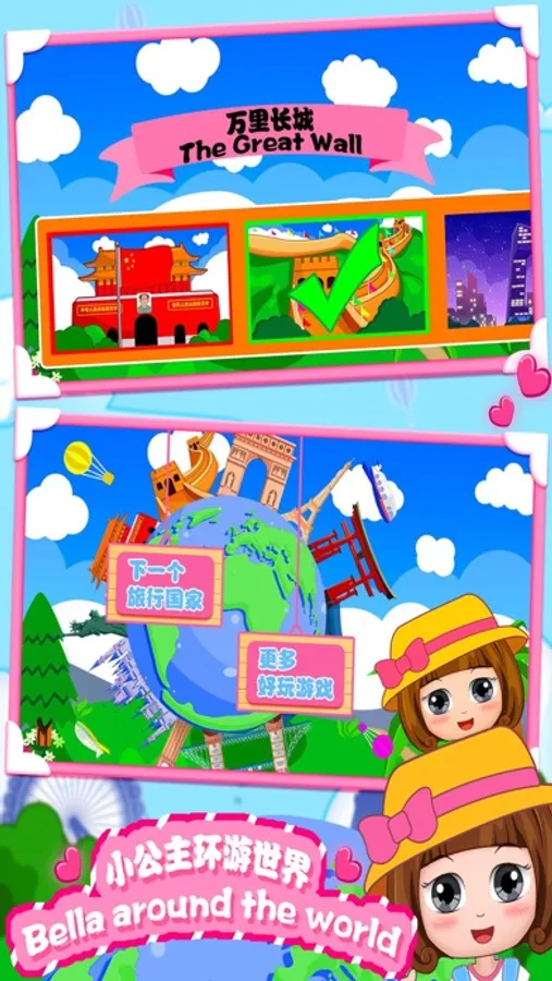 "Bella travels around the world" is a kind of educational game for children. Children can visit various countries through the game. You can also know the customs of every country while visiting scenic spots.