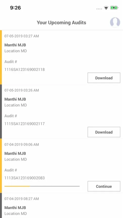 Simplifya's app allows you to easily conduct audits. Log in using your Simplifya account credentials and you’ll see all of the outstanding audits currently assigned to you. Tap the audit you wish to complete and start auditing! You can safely start and stop audits without losing any data, conduct audits without a wifi or cellular connection, and easily add notes and pictures to audit questions.