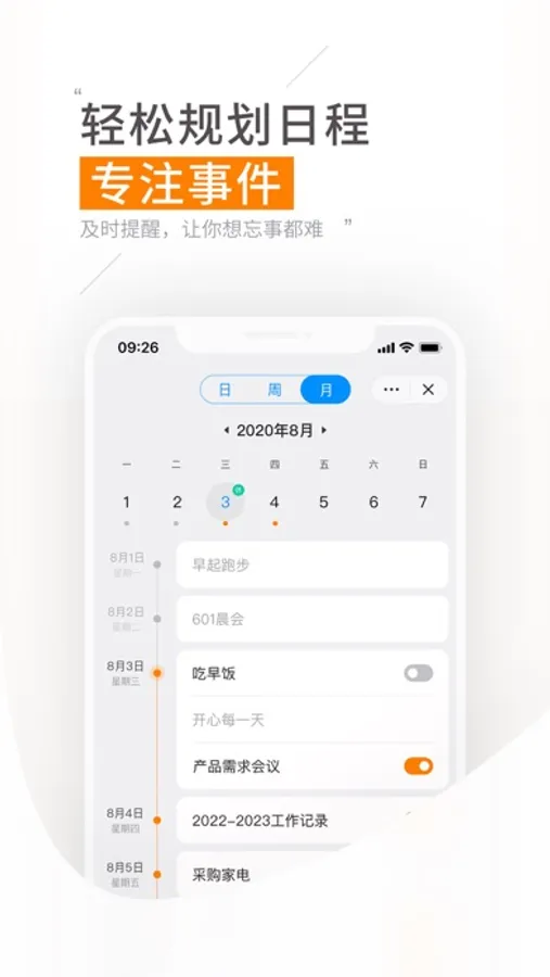【事件提醒】无论是单次、多次还是复杂的重复周期,都能够自由创建,如定期会议、缴费还款、法定节假日、金融交易日等,并支持以发短信和发微信等方式来提醒你。