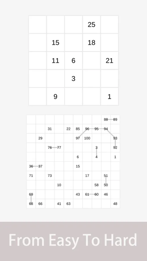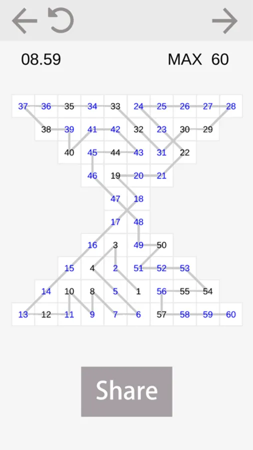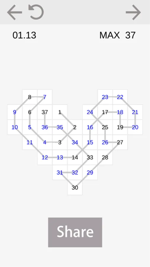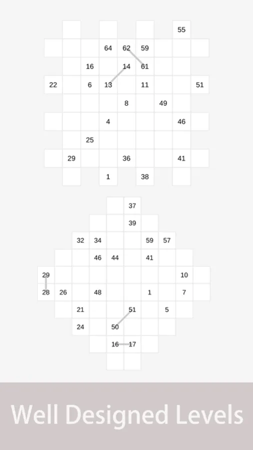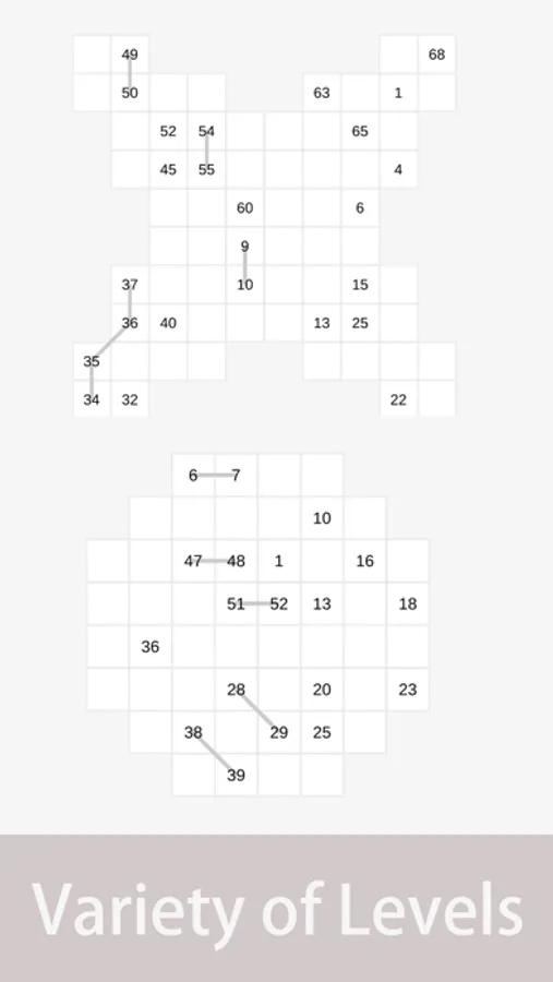 The goal of the game is to fill the grids with adjacent numbers to make an consecutive number knot.