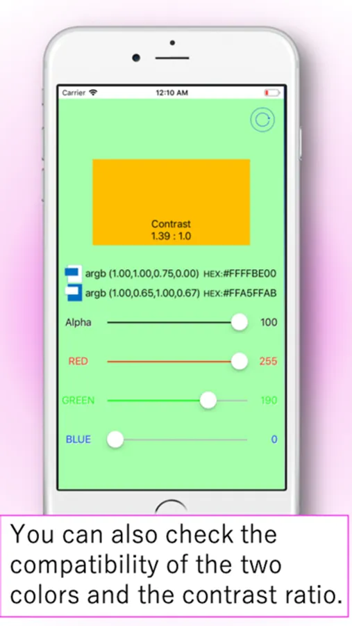In addition, since the contrast ratio of the two colors being displayed is displayed, it can be confirmed whether it complies with the design guidelines.
