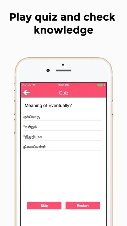 Easy to search Tamil meaning of English word. Copy, Share, Favourite or Listen words. Play quiz and improve knowledge.. We're having collection of 42000 words.