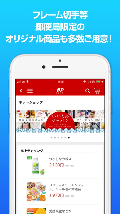 郵便局のネットショップは、各種ギフトや全国の特産品・日用品をお買い物できる通販アプリです。また、本アプリでは普通切手やはがき、レターパックなどの郵便切手類をご購入頂けます。