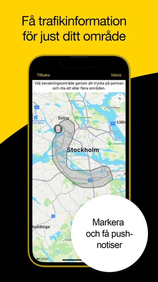 Trafiken.nu Stockholm är en del av Trafik Stockholm. Trafik Stockholm är en samverkan mellan Trafikverket, Stockholms Stad, Nacka kommun och Region Stockholm. Appen är inte en navigator utan är tänkt att användas i syfte att ge dig relevant information om aktuellt trafikläge innan du startar din resa.