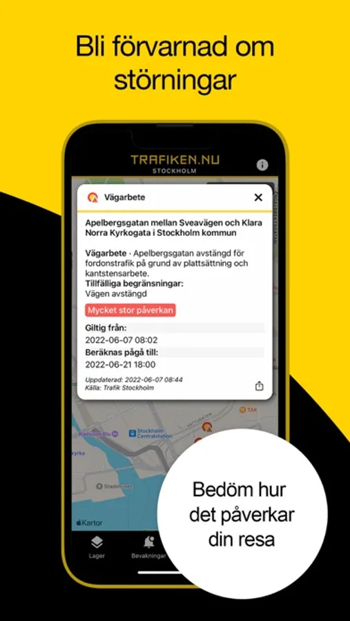 Kommer jag att hinna i tid till mötet? Tänk om det är köer i tunneln i dag! Borde jag välja en annan väg? Med hjälp av den här appen kan du uppdatera dig om trafikläget innan du ger dig ut på vägarna. Aktuell trafikinformation, direkt från trafikledningen för Stockholmsregionen, ger dig chansen att planera din resa smartare, oavsett om du pendlar med bil eller om du reser med kollektivtrafiken på vägarna.