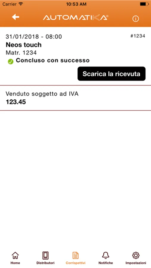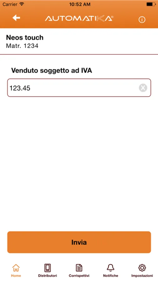 Grazie all'app Automatika potrete facilmente inviare in maniera telematica il corrispettivo della vostra vending-machine, assolvendo alle prescrizioni dettate dall'Agenzia delle Entrate.