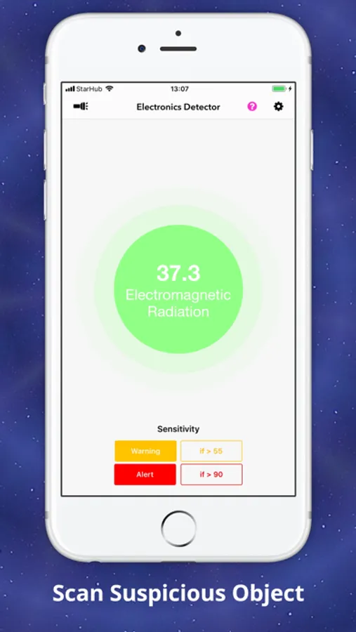For every phone, there is a special “Sensor Area”. Activate the app and use your earpiece to roll around the back of the phone, when the earpiece is close to the “Sensor Area” you will be alerted. Use this “Sensor Area” to scan suspicious objects and areas.