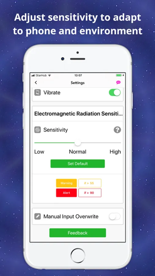 The default setting can be changed easily using the Sensitivity Bar or Manual Input Overwrite to suit your environment and phone.