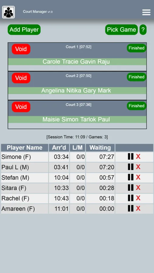 A manual mode is also available for those times when auto picking is not applicable or if you are a coach and want to enter specific games on each court.