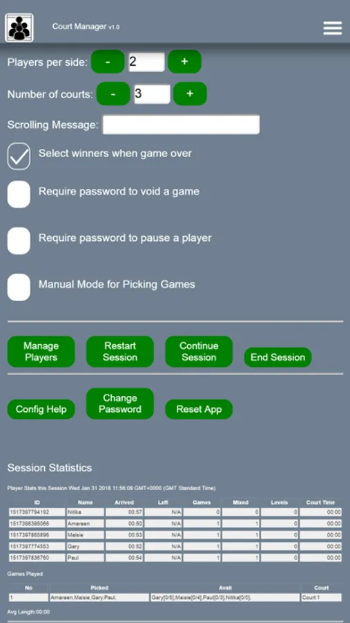 Court Manager is a great app for any sport where you need to pick fair games for your club members.