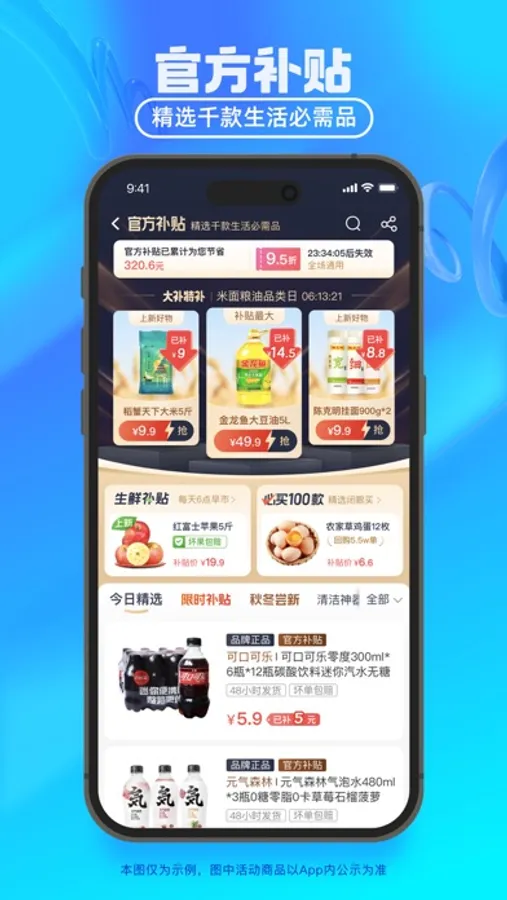 品类齐全:买蔬菜,买水果,买肉禽蛋,买酒水乳饮,买休闲零食,一日三餐生活所需一站式购齐
