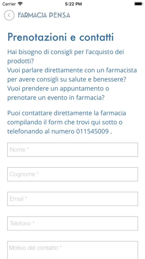 L'App della Farmacia Pensa di Torino ti permette di avere il tuo farmacista di fiducia sempre a portata di mano con consigli, informazioni, prenotazioni, ordini, richieste di prodotti e servizi in farmacia.