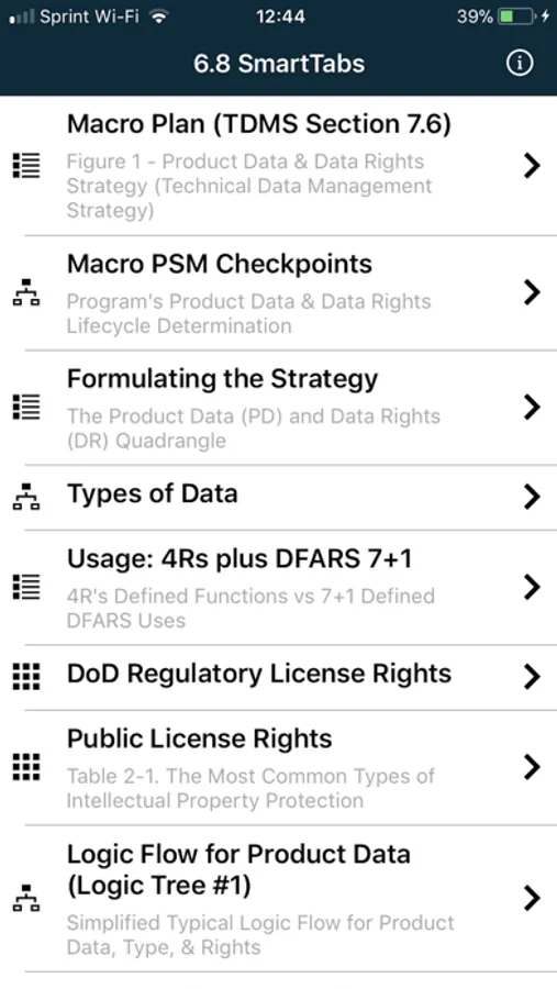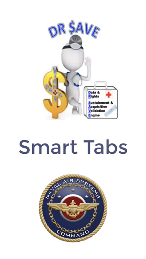 The SmartTabs mobile app is a Navy/Marine Aviation's "Best Practices" and "Lessons Learned" desktop reference set of visual aids constructed using the Department of Defense Acquisition Regulation Supplement (DFARS) requirements for participants dealing with Product Data/Technical Data (PD/TD) and their associated Intellectual Property (IP) (commonly known as "Data Rights"). These Best Practices graphically represent a compendium of most commonly encountered PD/TD IP related planning, acquisition, marking, reporting, and alternatives mitigation situations (so it fits most- but not all- situations). SMART TABS illustrates simplified concepts and decisional tools treating PD/TD related IP's: (i) management planning, assessment, and alternatives reporting, (ii) decisional logic trees associated with most commonly encountered IP pathways as part of creation, acquisition, usage rules and issues (including potential mitigation alternatives), (iii) conformal assertion markings samples (AKA "Stickers") using "Best Practices" treatment, and (iv) references and links for practitioners, including its supplementation to the Data & Rights Sustainment & Acquisition Validation Engine (DR SAVE) toolset.