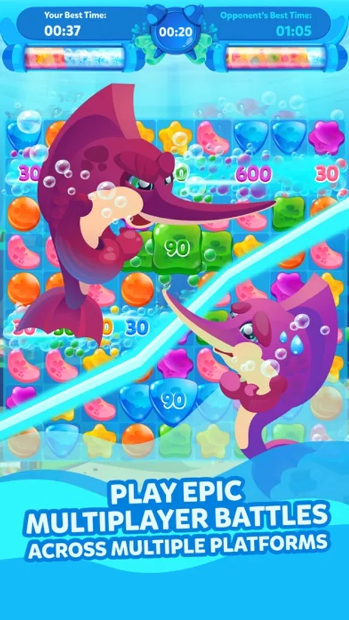 The single player mode focuses on a narrative, which unfolds with each passing level. The player is the hero, who needs to help get the ocean back to its original clear blue state, by ridding the ocean of polluted jellies, caused by the jelly jellyfish and their king.