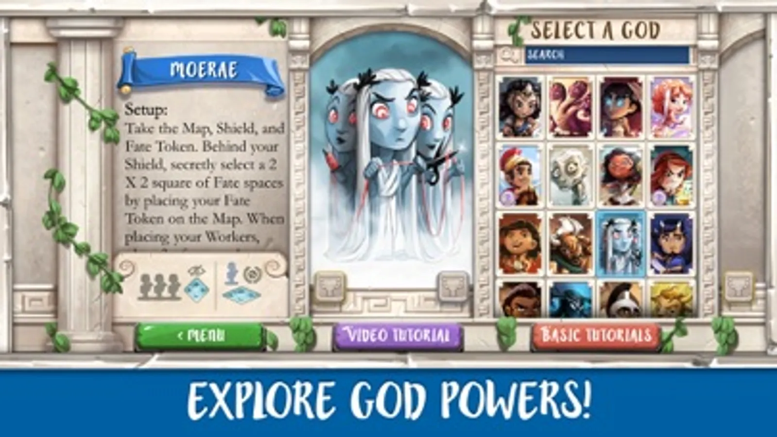 • Let the app choose balanced god powers for you at random, using a draft, or through player choice!
