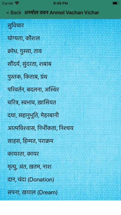 Hindi Anmol Suvichar is app including finest anmol vachan quotes in hindi these app helps to change future life & career These app contains 54+ categories in hindi users can easily change there status on social networking profile like