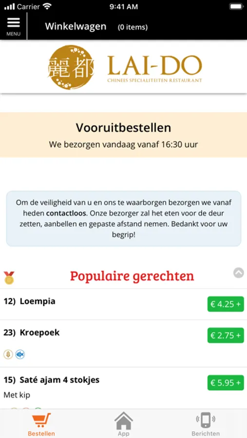 Download onze app en blijf op de hoogte van het laatste nieuws en de nieuwste acties, aanbiedingen en kortingen. Via onze app kunt u onze menukaart bekijken en direct vanaf uw telefoon uw bestelling plaatsen. U kunt via de app ook met iDEAL betalen!