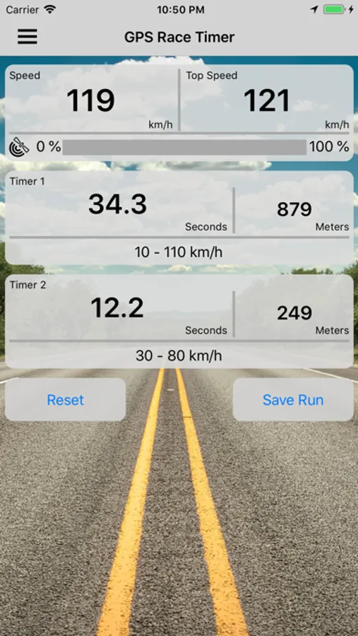 With GPS Race Timer you can measure the acceleration times of your vehicle.