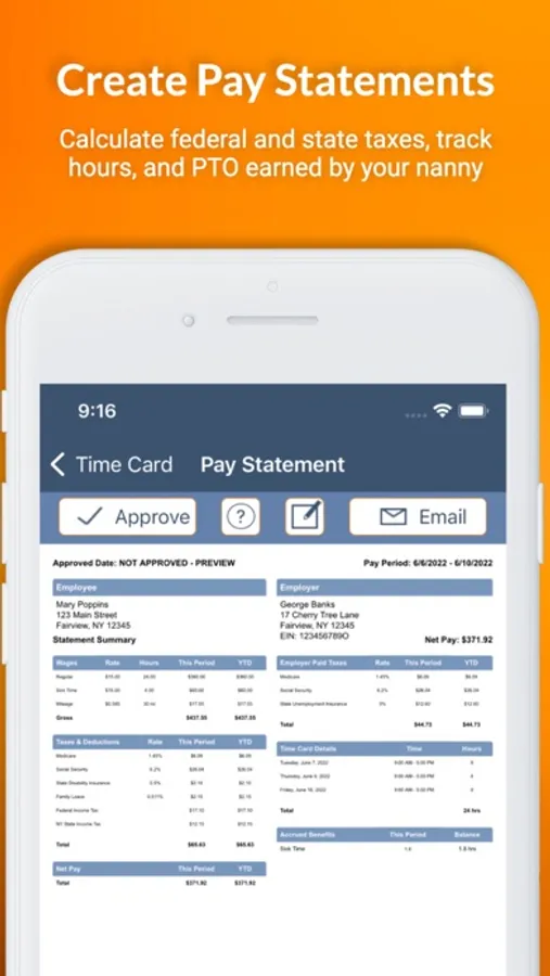 * Paystub maker - Easily email your generated pay stubs to yourself and your nanny right from your device.